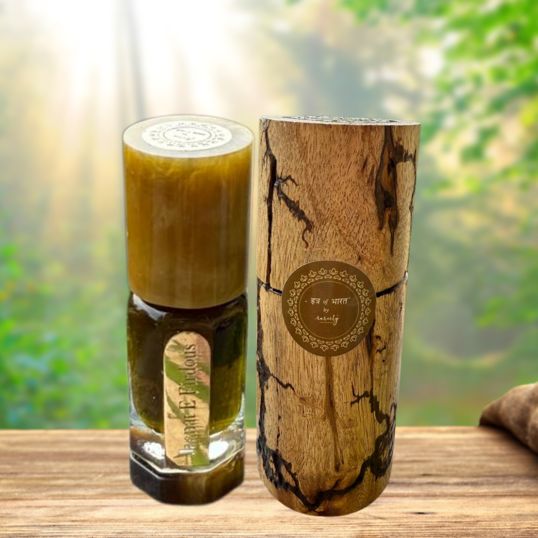 Crafted blend of natural herbs, florals, spices, and woods, traditionally distilled using the deg-bhapka (steam distillation) method. Crafted without alcohol or synthetics, often aged in sandalwood oil to deepen its aroma. Unique for its intense green, spicy, musky profile unlike most floral or sweet Ittars.