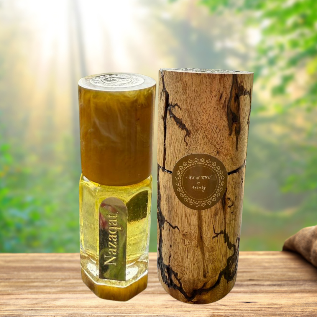 A refined blend of delicate florals, soft musks, and precious woods, traditionally distilled in sandalwood oil using the deg-bhapka method. The name “Nazaqat” means elegance or delicacy and the ittar lives up to it by capturing subtle beauty with royal sophistication. Unique for its smooth, velvety composition neither too bold nor too faint, but perfectly balanced