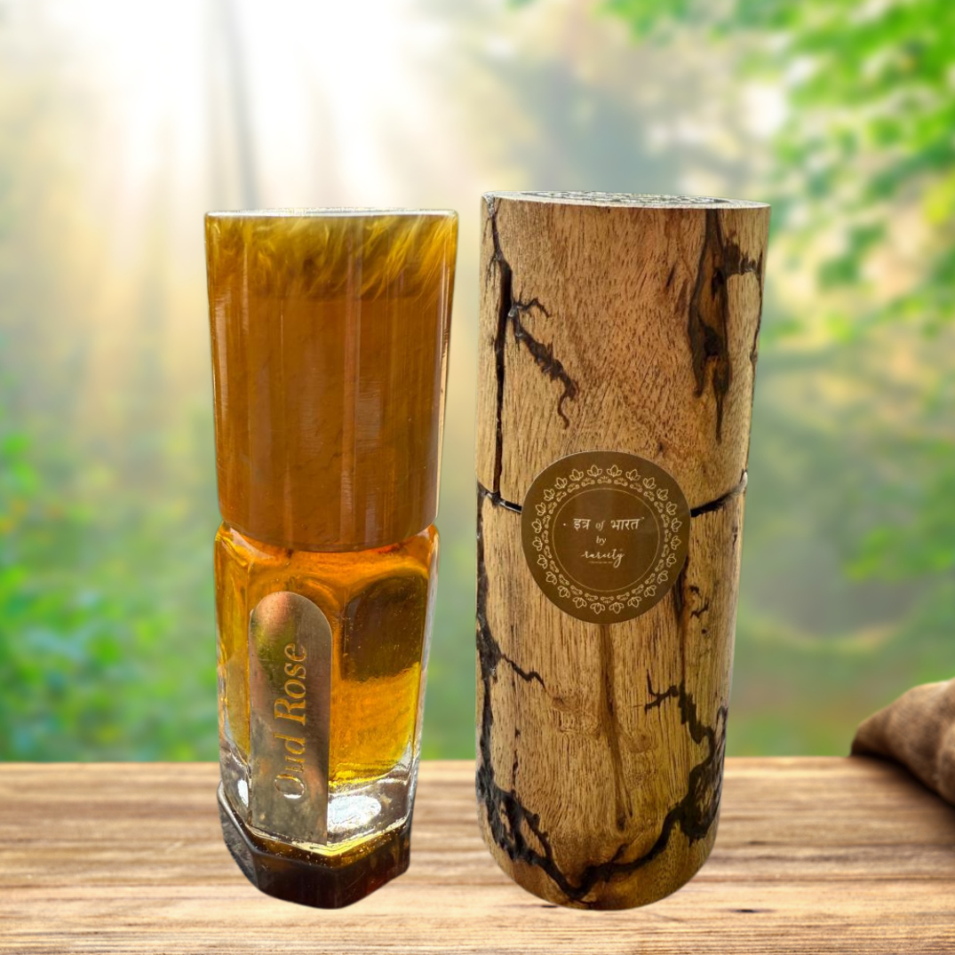 Crafted through traditional hydro-distillation of pure rose petals (often Damask rose) and natural oudh (agarwood).Oudh Rose Ittar blends deep, smoky agarwood with lush, romantic rose. Rich, sensual, and grounding it evokes luxury, love, and inner strength.